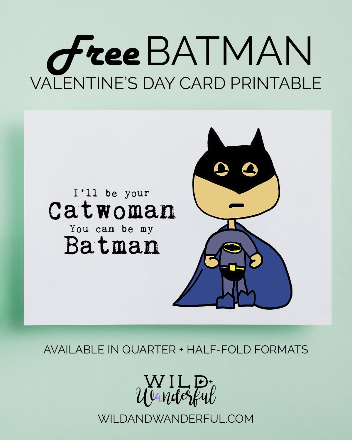 I had a tiny crush on my Superman Valentine (found here) so I decided to create another card for fans of another superhero. This time it was the Caped Crusader…although I had a hard time picking who the love interest should be, or what it should say. If you have better ideas, PLEASE tell me! Catwoman strikes me as one of the sauciest gals, so she was my pick.