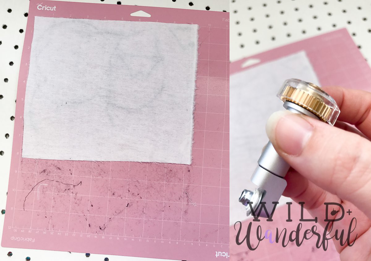 HOWEVER, for smaller projects with intricate cuts, it’s totally something I lean on! I hate cutting and tracing teeny pieces and being able to have the Cricut Maker do the work for me is super fun. Just load a piece of fabric onto the mat and let her rip. Watching the rotary tool work is pretty slick and it has a better accuracy for smaller pieces than I could ever dream of. Which is why it was perfect for this mask!