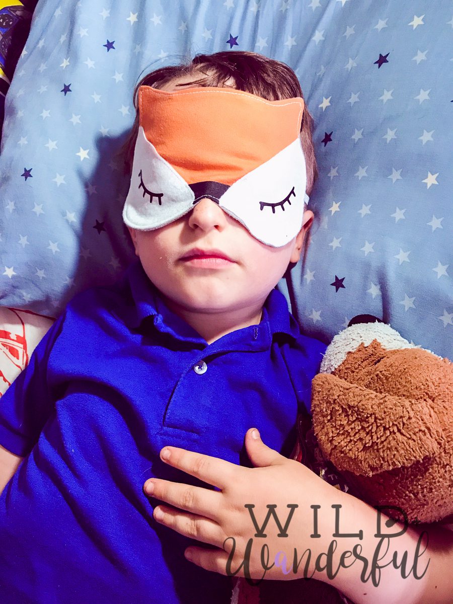 My kiddo is OBSESSED with wearing a sleep mask to bed every single night. This has been going on for nearly two years now and he feels like he doesn’t get enough rest if he wasn’t wearing his mask. He’s also equally as obsessed with foxes. It was only natural to want to put the two together.