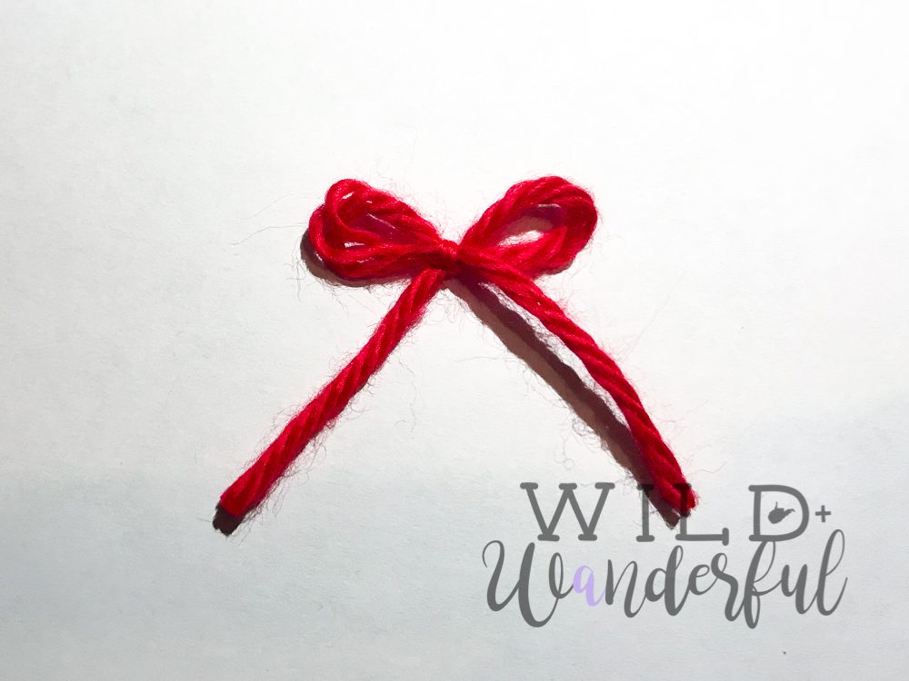 Step 6: Take red yarn and form a small bow.