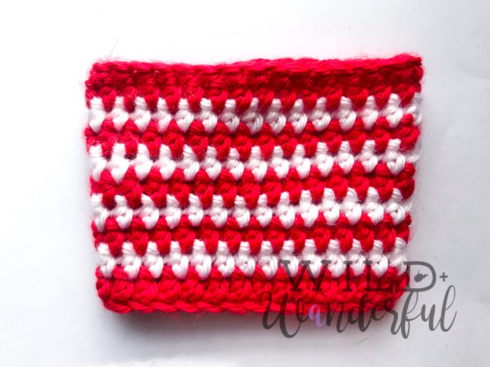 Round 4 – 10: (alternate between red and white) Ch 1, HDC 29 around, join.