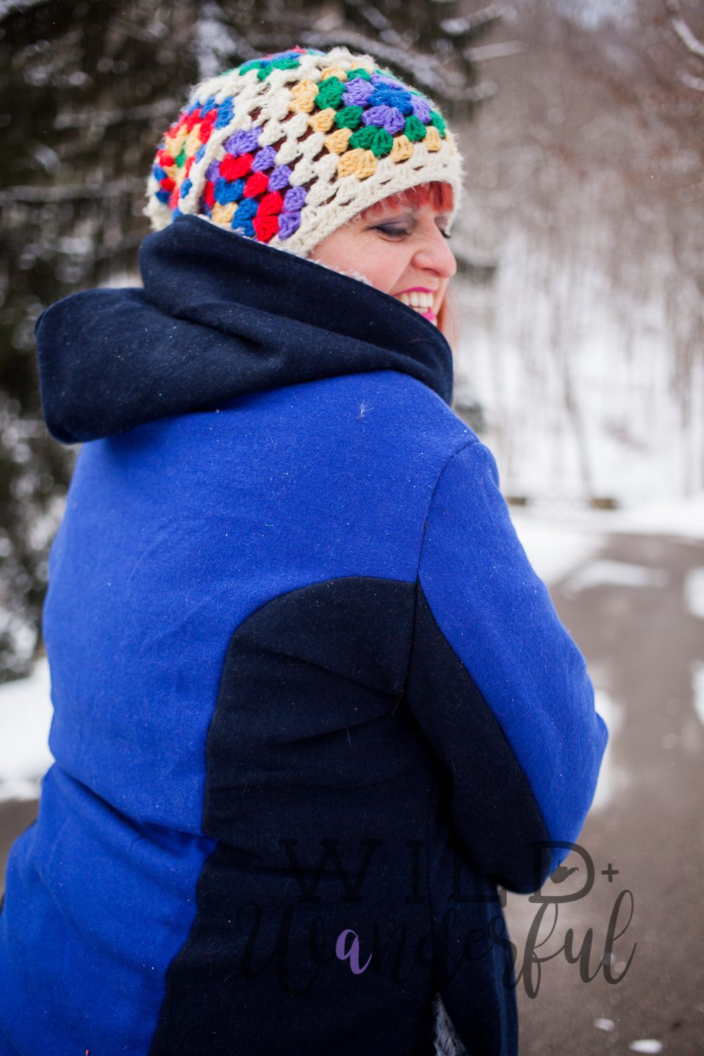 Of course, I’m annoying and made a few changes…but that’s to be expected. But honestly, not too much was adjusted. The pattern does call for a different button style, but once I had the jacket on me, I decided that I wanted it a little snugger, so I added buttonholes instead. I also didn’t do a facing for my hood, I just cut two of the same for the lining and outer fabrics, because I wanted more of the fur to show.