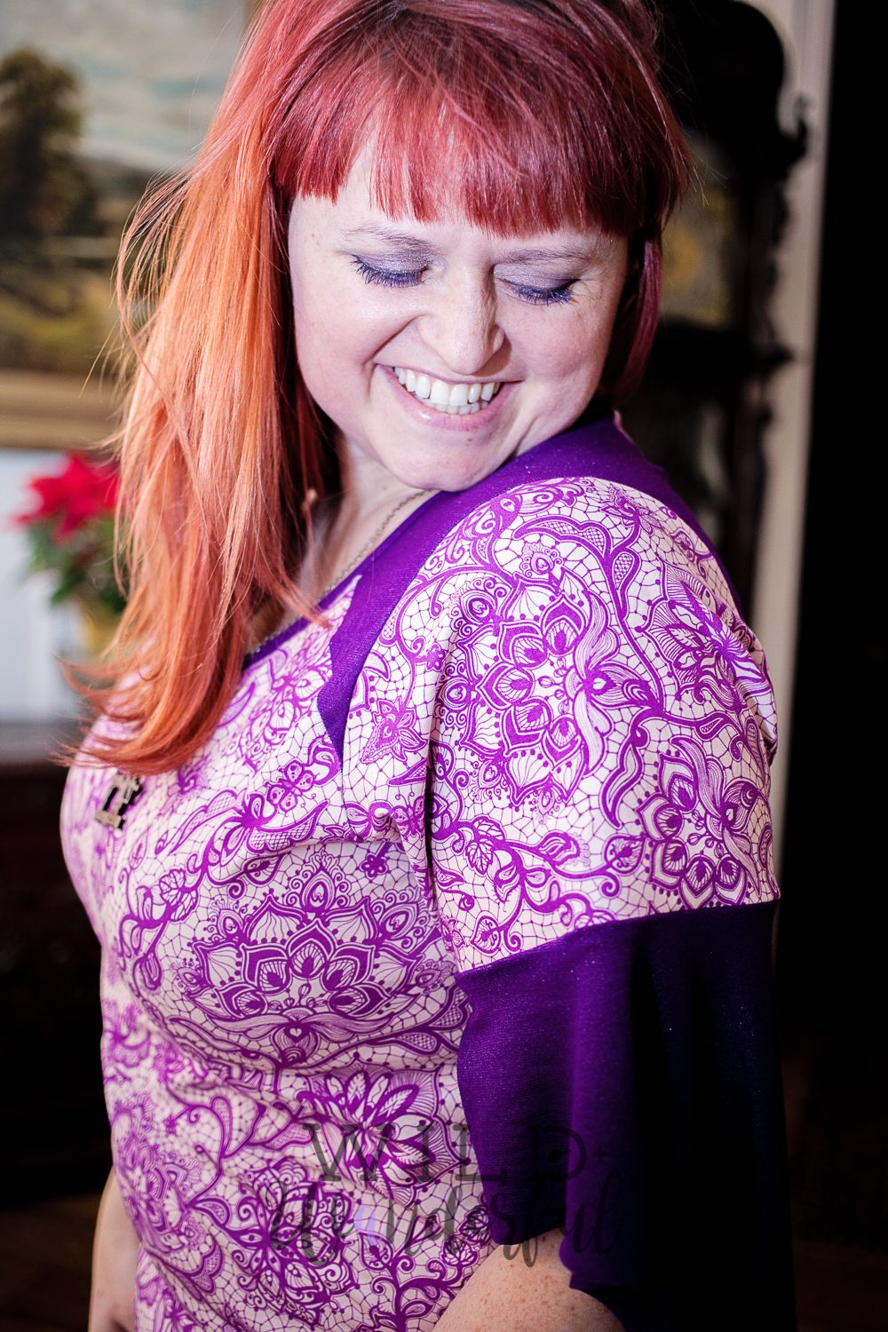 I seriously am in love with this print! It’s perfectly timed for Valentines Day and spring and I’m thinking it’s going to get a lot of wear from me! How can I resist purple and sassy sleeves? Haha.