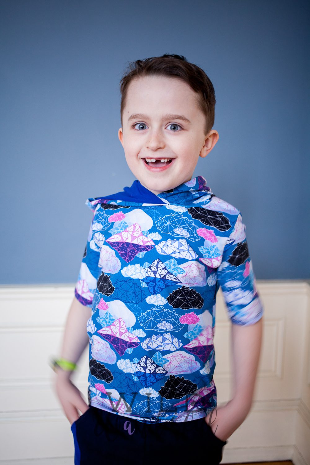 I think it’s safe to say that Louis agrees.  He also would tell you that he loves his new outfit.  Apparently kiddo is hooked on shirts with hoods, because it’s all he asks me to make anymore.  I used my trusty YoHo Henley and made the sleeves stop just above the elbow.  It’s like a transition shirt…not short sleeved, but not long either.  Half sleeves are for some reason my thing right now and I thought I’d try it out on Louis.  I actually really like it and I might make a few more spring weather shirts hit there as well.