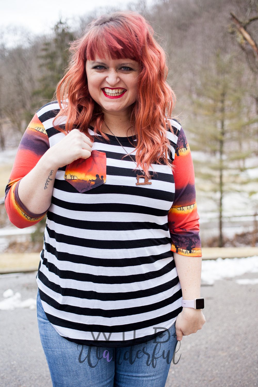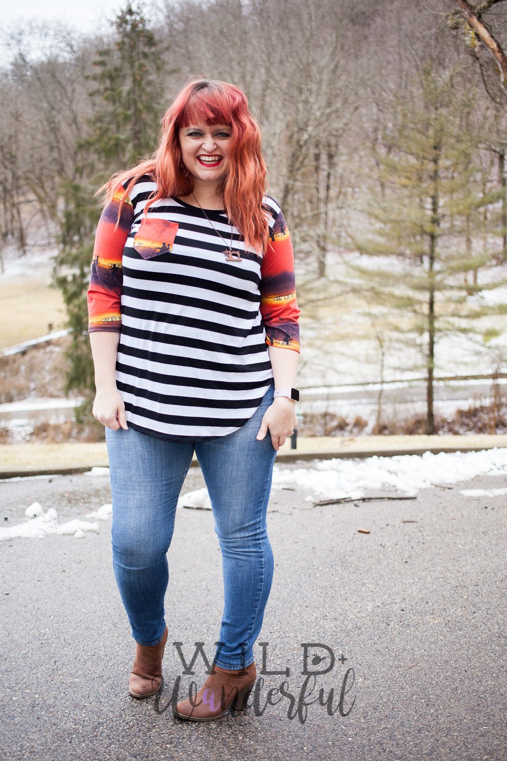 Honestly, I was a little nervous that my combo of black and white stripes and Stranger Dali wouldn’t go well, but I’m glad I went for it. Because hello freaking awesome shirt.