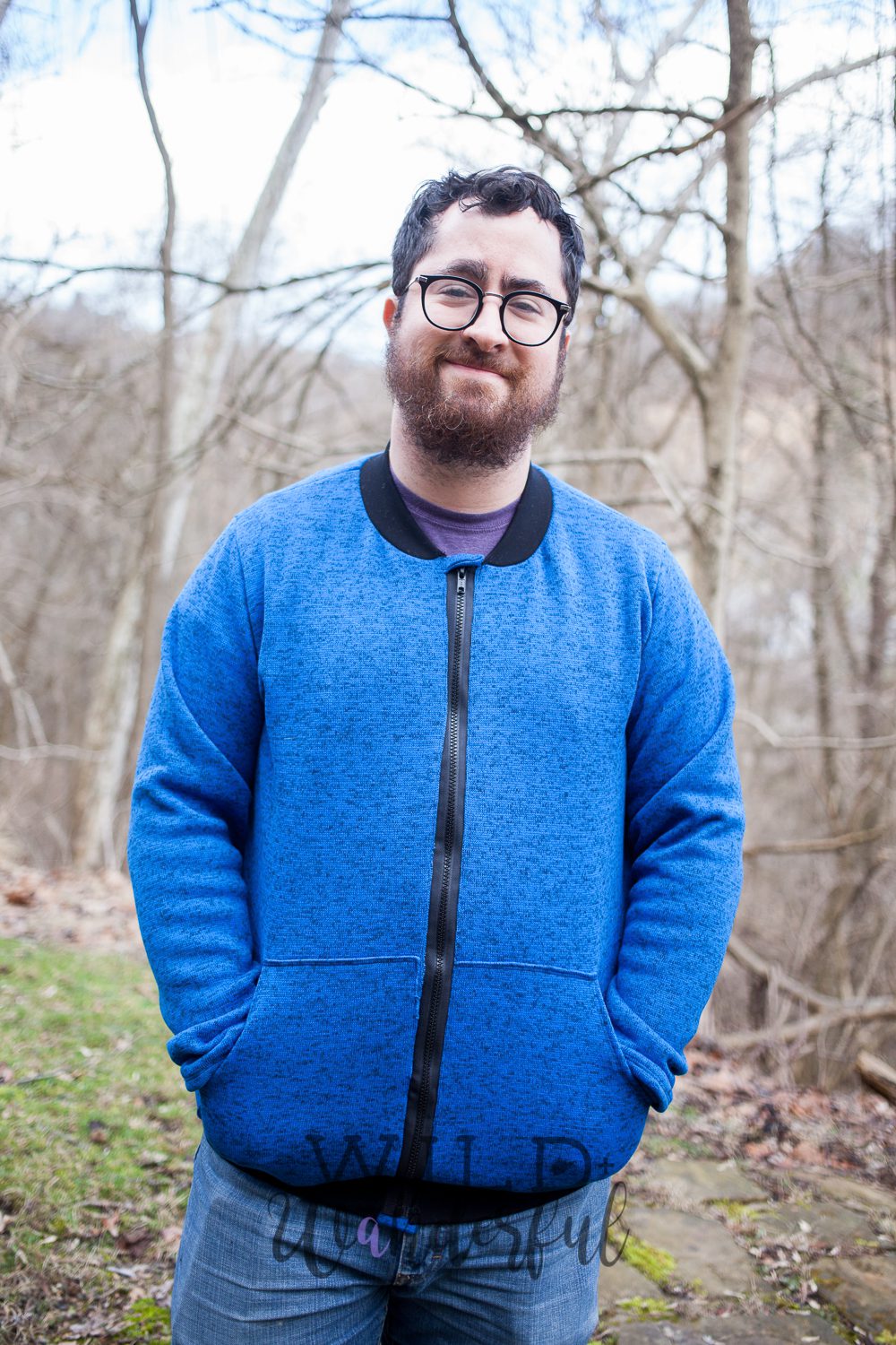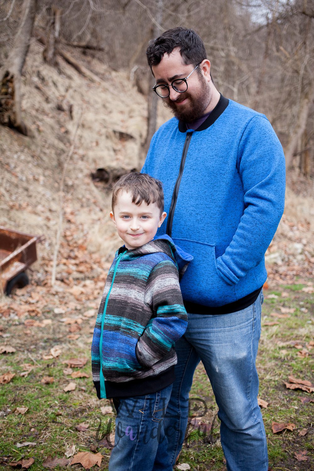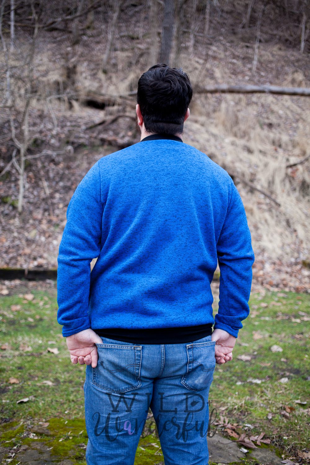 I created the bomber collar version for Bennett, with kangaroo pockets and hemmed sleeves. The pattern includes lengths for short/average/tall heights…and while Bennett is 5’10” (which doesn’t fall into the tall category), he gets all of his height in his torso and the tall length of P4P shirts are necessary. I love that Judy drafts this for those heights, so it takes the guess work out of adjusting for height.