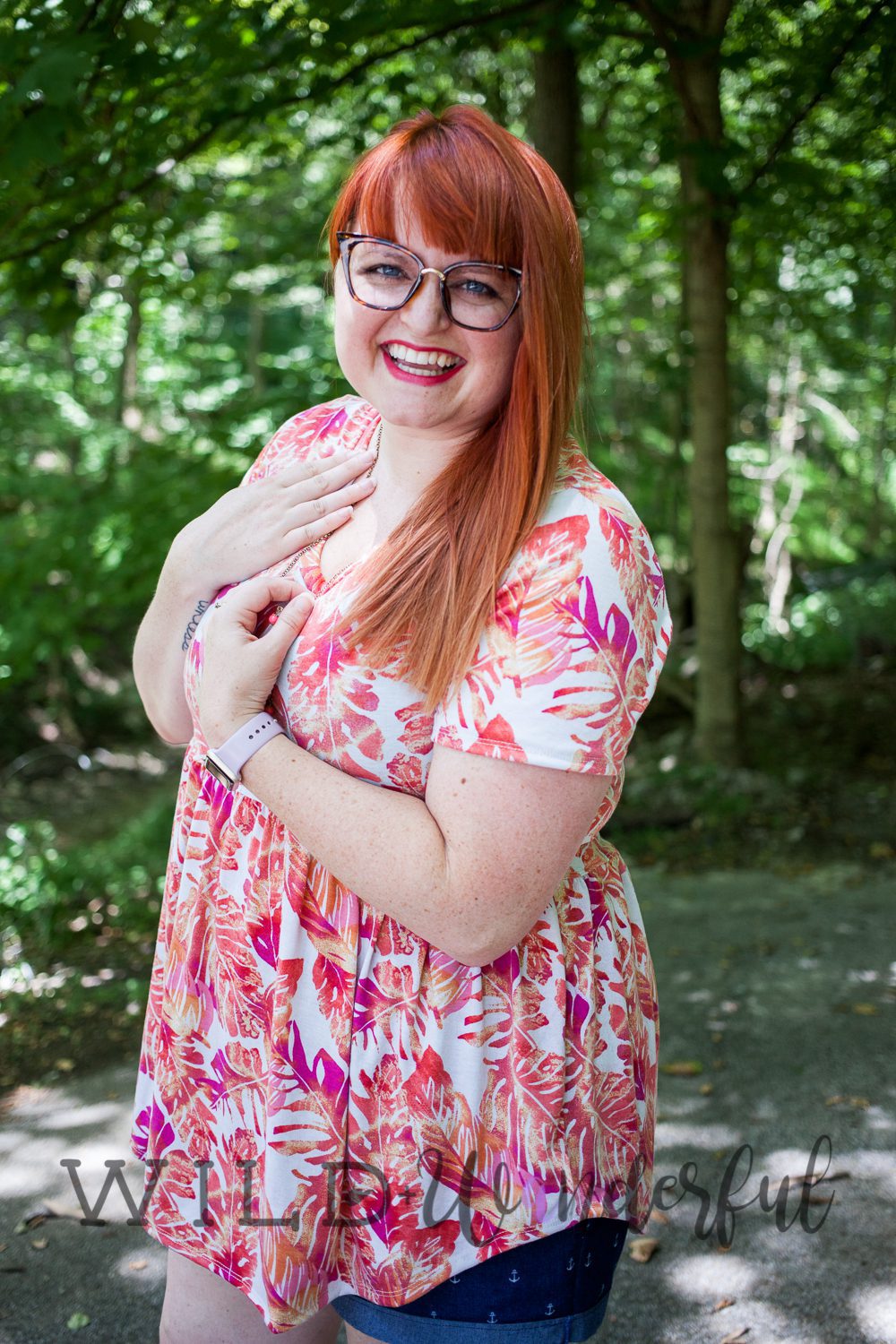 I’ll admit that these colors are even out of my usual scheme of things. I tend to shy away from anything that matches my hair color, even in the slightest. I’m weird, I know. But I was drawn to these pretty purple/orange/pink/red combos that were in the print and it was a necessary thing to make happen.