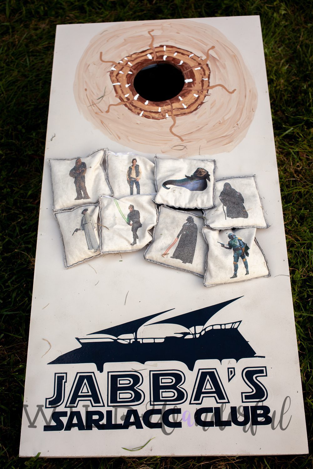 While putting together our ideas for Lou’s Star Wars birthday party, we wanted to create a game that the kiddos could play, that we could use after the party was over, and that would be ridiculous and on theme with it all. Since we were themeing the party around the Original Trilogy, it felt necessary to add this iconic scene to our decor.
