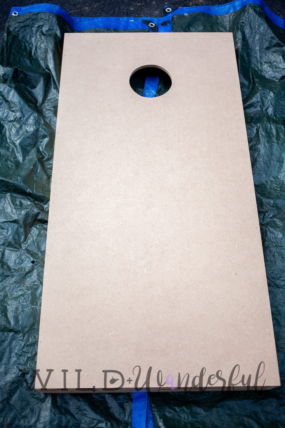 Let’s talk boards first. Yes, of course you can make your own. But we chose not to out of 1) laziness and 2) time constraints. We were about to head out of town for our bi-annual family beach vacation and adding a wood cutting project to our list sounded like too much. We found sturdy, blank, premade boards at our local craft supply store. Boom. Done. We also decided to buy only one, to take up less yard space for the game itself, and to have only one item to use. It’s the same game, you just stand on the same side as your opponents. Not a big deal, right?