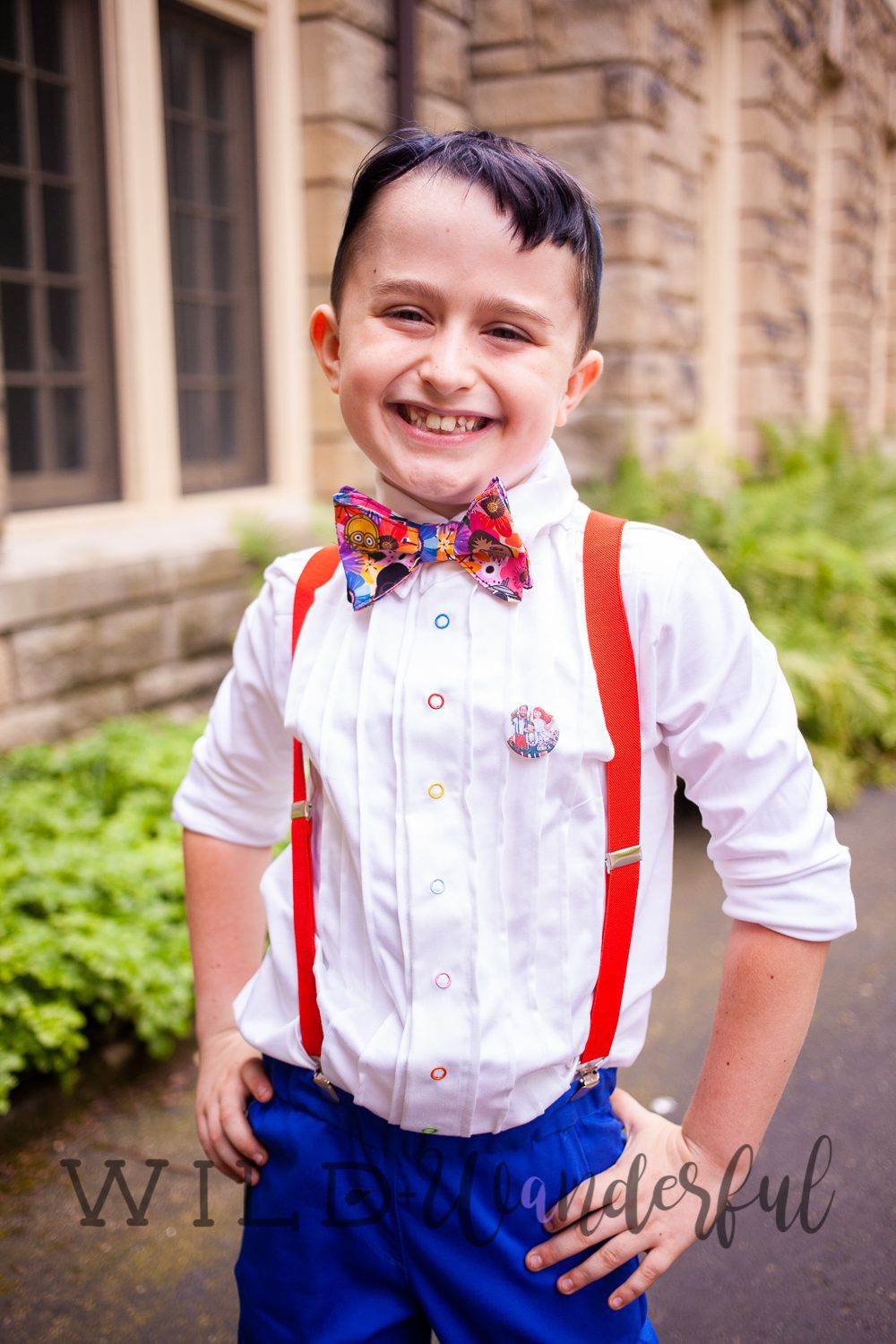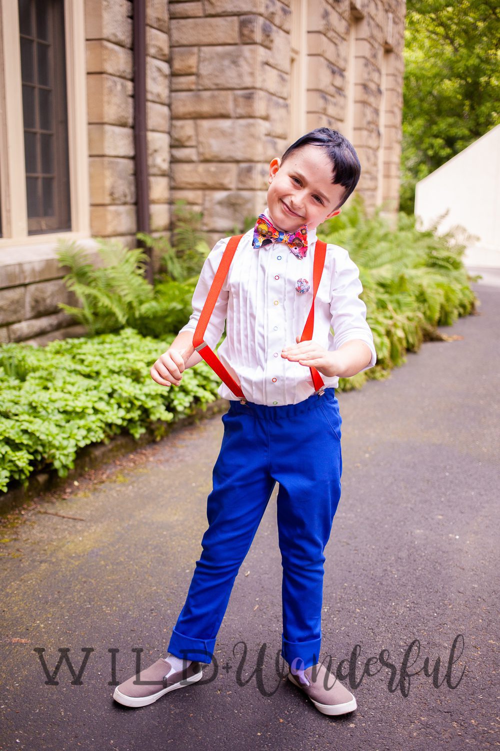 My vision for Bennett and Louis was to have them in colorful clothing, with a classic feel, and “tuxedo” style shirts. I also wanted them to be comfortable in the potentially hot June weather, so I decided to stay away from too many layers (ie: no jackets or cummerbunds). I absolutely adore how they looked on our big day! To the point where I’m trying to figure out how to make Louis wear suspenders and a bowtie every day of his life. Ha!