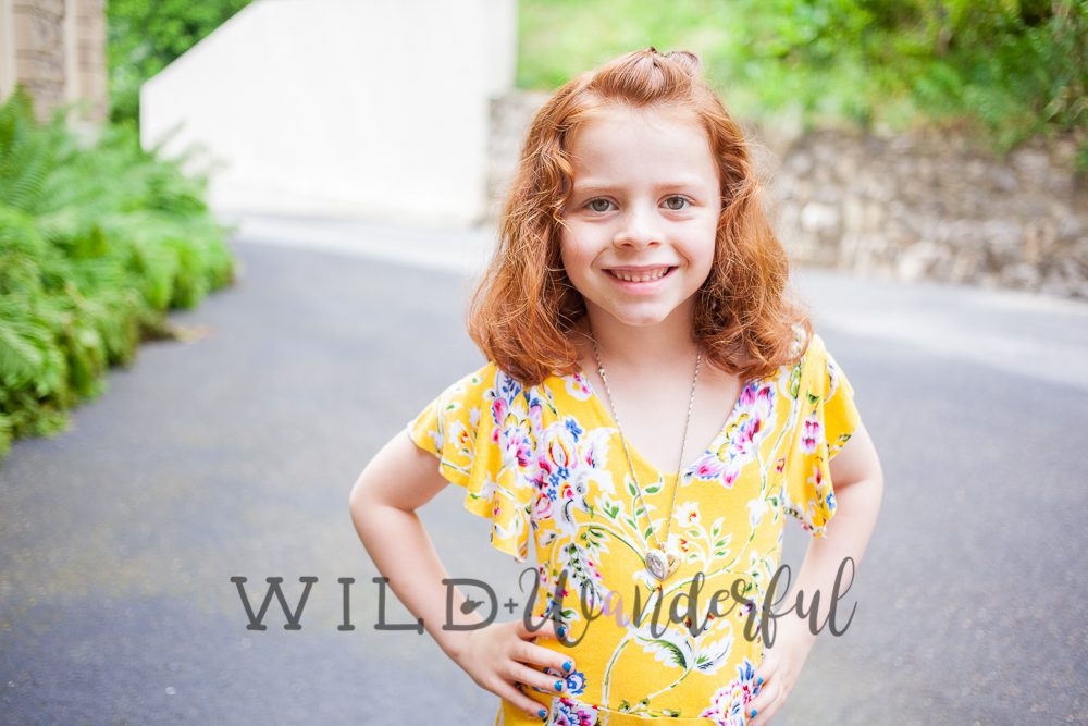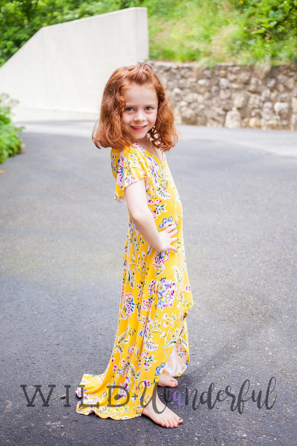 For my niece, I really wanted a fabric that would coordinate well with her momma’s outfit, but not be a match. Lucky me, JoAnn Fabrics had the same exact fabric in a different colorway. Once I saw it, my mind was quickly made up. As a redhead myself, I don’t always (or ever) navigate toward yellow or orange tones. But I KNEW D could pull this color off. And she did. She was so darn cute in this dress!