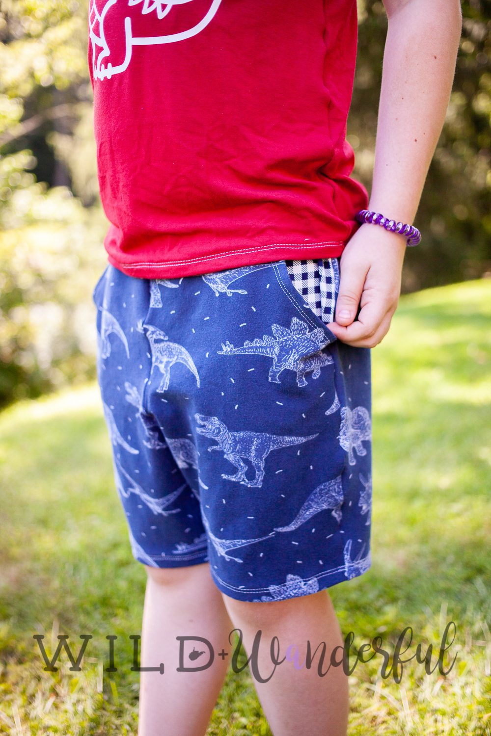What’s funny is that I built his look around the fabric on these shorts. I’ve had this little bit of dinosaur print left over from a couple of years ago and I was super excited to realize that I had enough for some shorts length Baby Bear Joggers.
