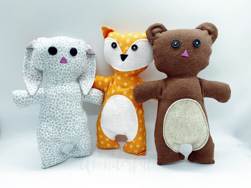 The pattern is incredibly simple and includes all three animals: fox, bear and bunny.