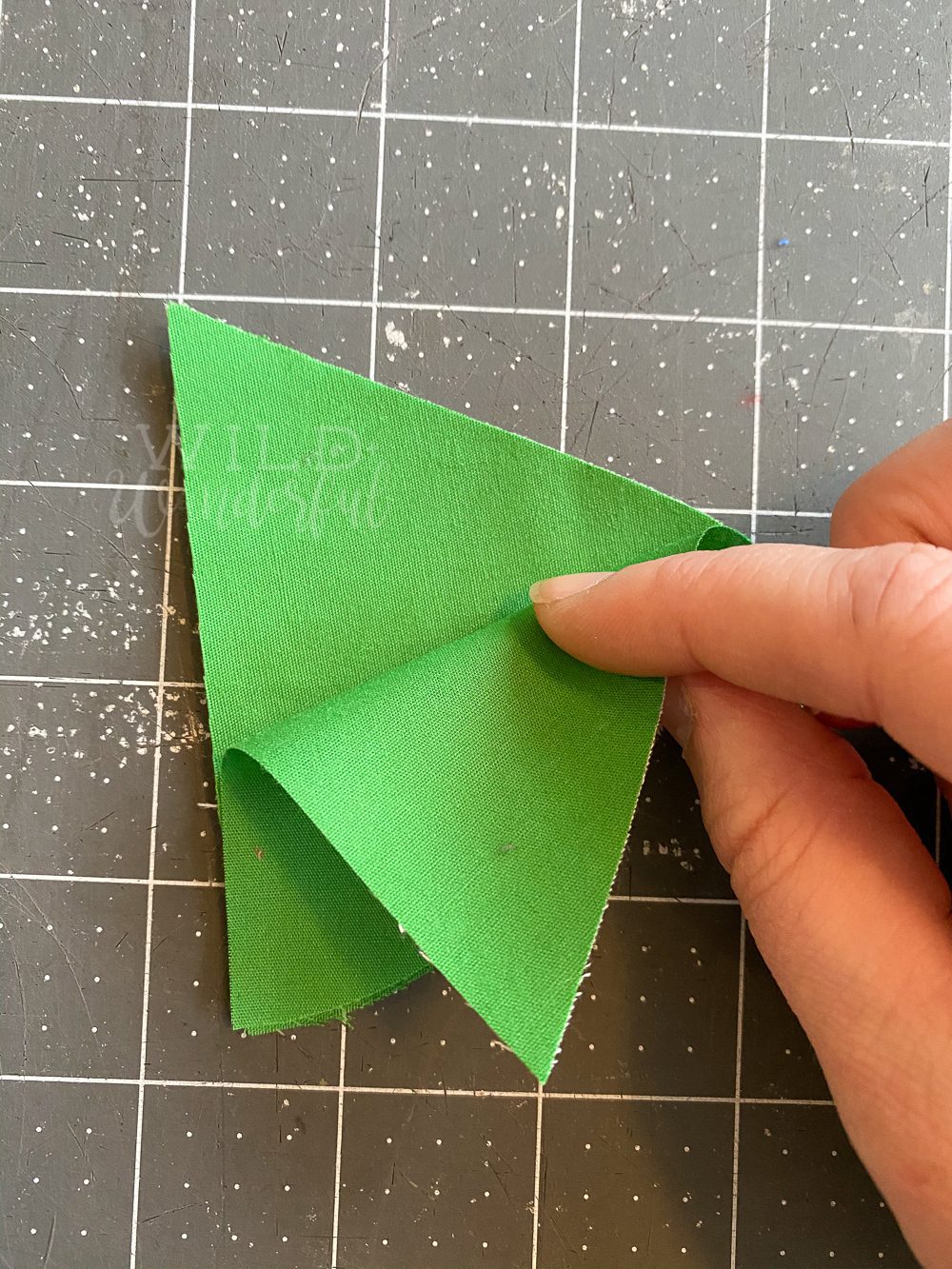 • Using the marking on the ear pieces, fold the long straight edge down — meeting the top corner to the marking.