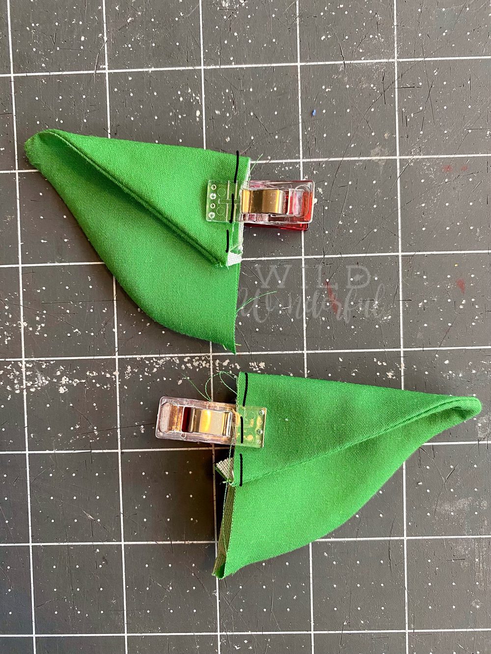 • With right sides facing together, align two mirror-image ear pieces on top of one another.