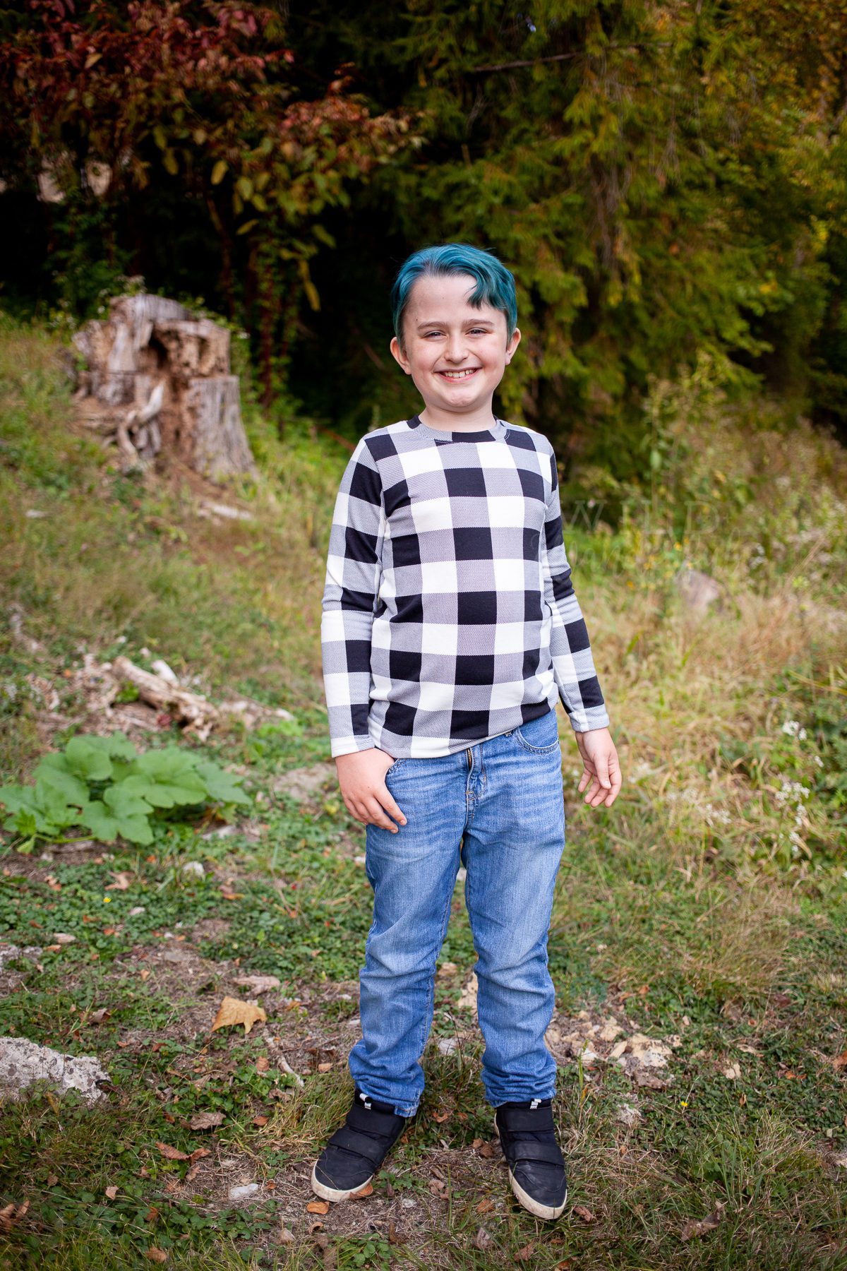 I’m really going to miss his bright blue hair when it fully grows out. I didn’t know it would become such an easy part of his style and identity! You can see those darker brown roots starting to grow and really start to show right now…it’ll be a while before I can get him in the chair with some bleach again. It practically gave me a heart attack when we took him in, because bleaching hair seems so extreme for a 10 year old. But in the end, it was no big deal and he’s done so great with the upkeep of his color.