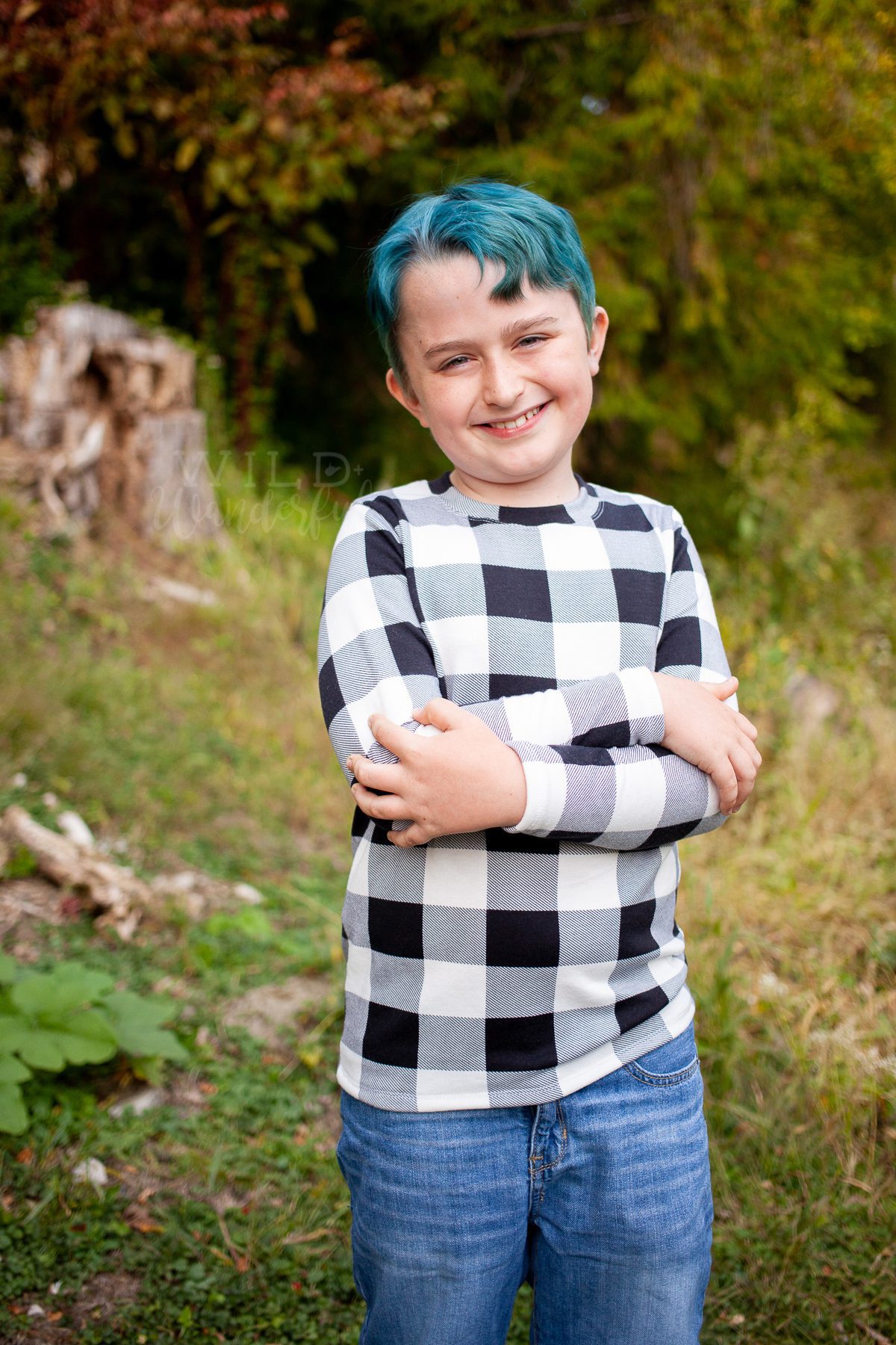 I’m really going to miss his bright blue hair when it fully grows out. I didn’t know it would become such an easy part of his style and identity! You can see those darker brown roots starting to grow and really start to show right now…it’ll be a while before I can get him in the chair with some bleach again. It practically gave me a heart attack when we took him in, because bleaching hair seems so extreme for a 10 year old. But in the end, it was no big deal and he’s done so great with the upkeep of his color.