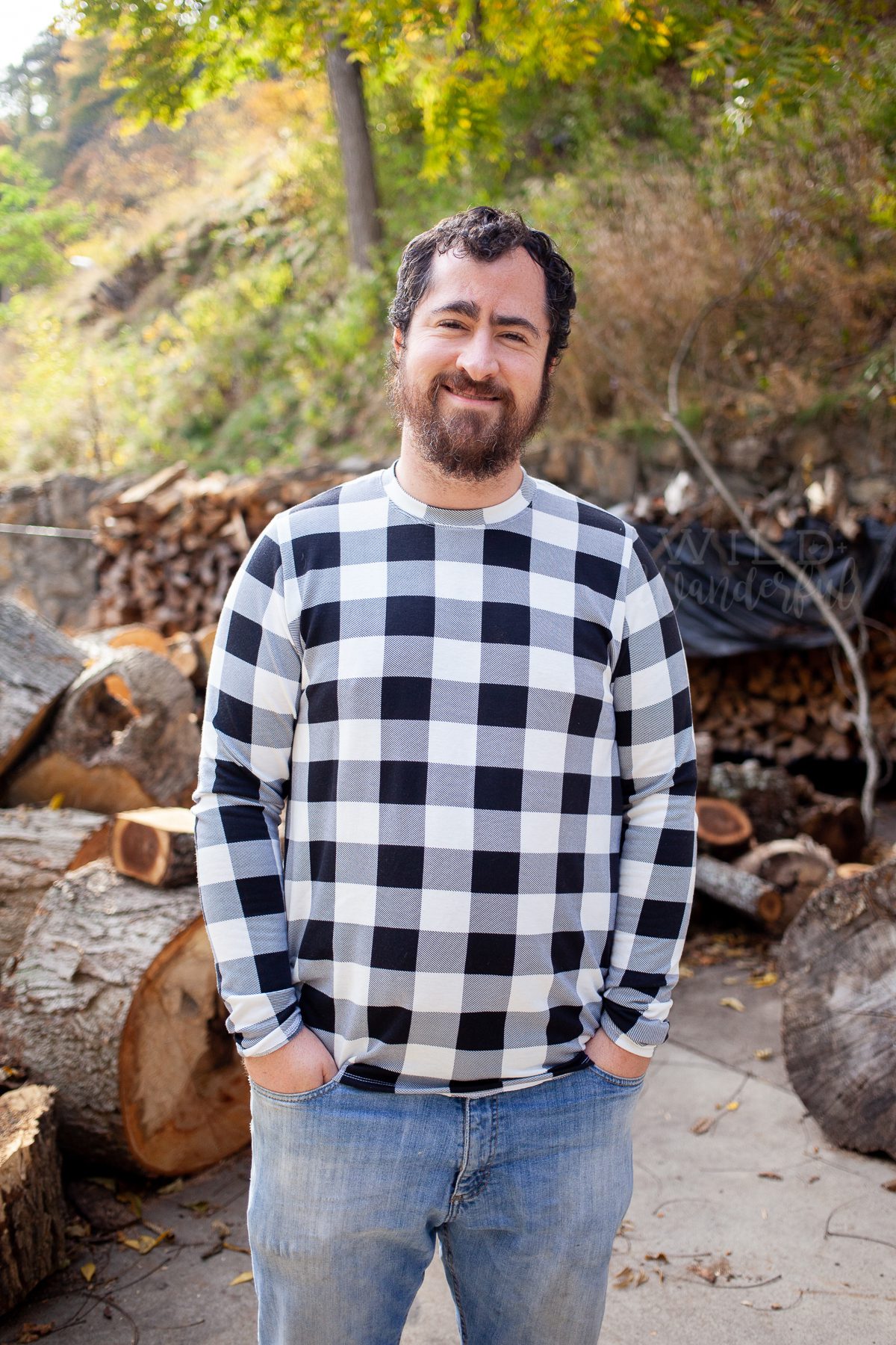 For my main squeeze, I sewed up a Men's Basic Tee, in a “tall” length, and long sleeves, with the crew neckline. The Basic Tee really covers all the basics that this bearded wonder wants in a top. One day I’ll make him a vneck version — but my lazy pants were on while I was sewing for the three of us and a basic neckline is so much faster! One day, Babe. One day.