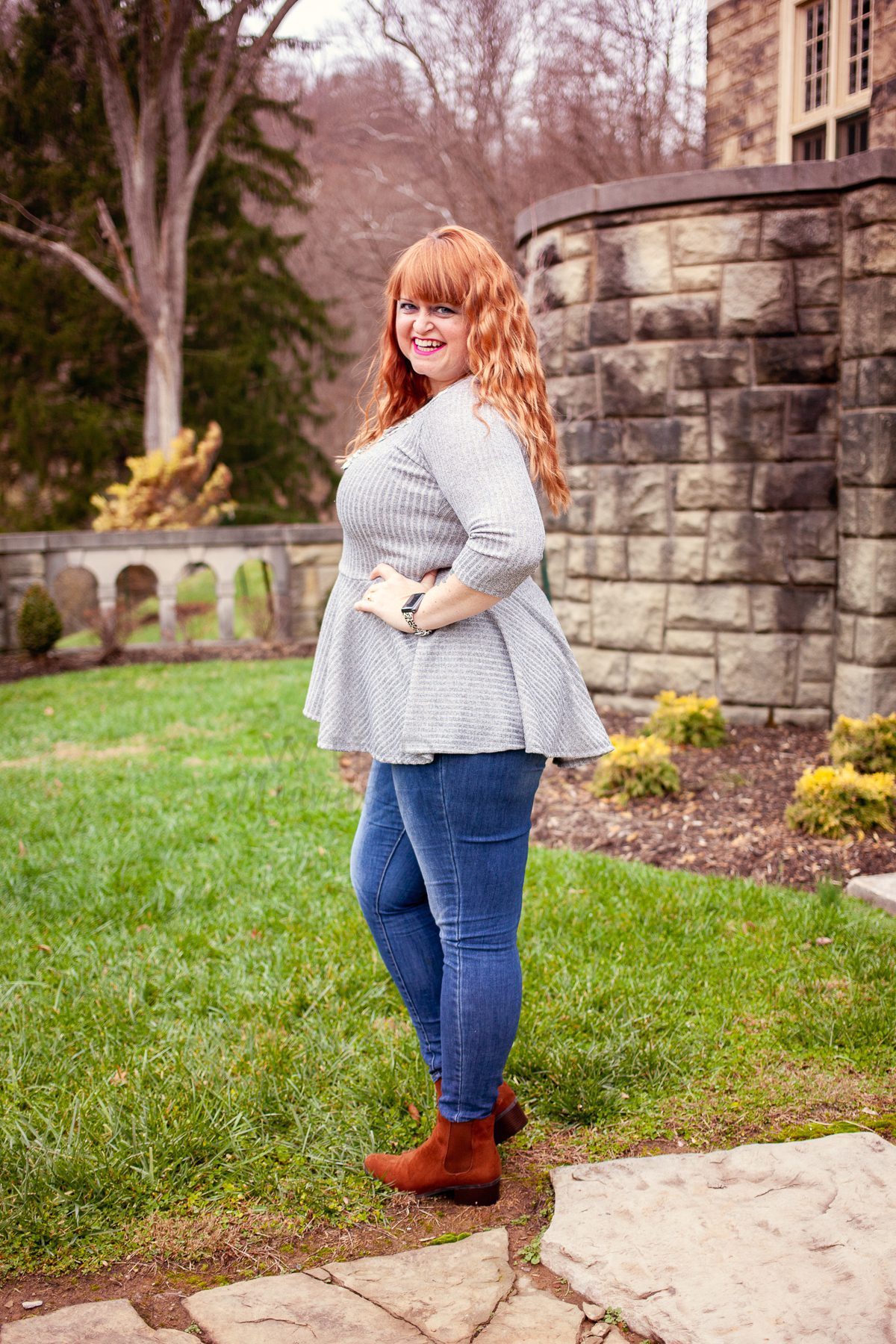 - Turned the circle skirt peplum piece into a “high-low” peplum instead. I added a couple of inches to the length of the peplum circle, and then opened up the circle, re-folded it, and then cut my waist opening. I did a sewalong (what feels like FOREVER ago) on P4P’s blog, where I explained how to make a high-low skirt. If you want to do this for yourself….I explain it much better HERE.