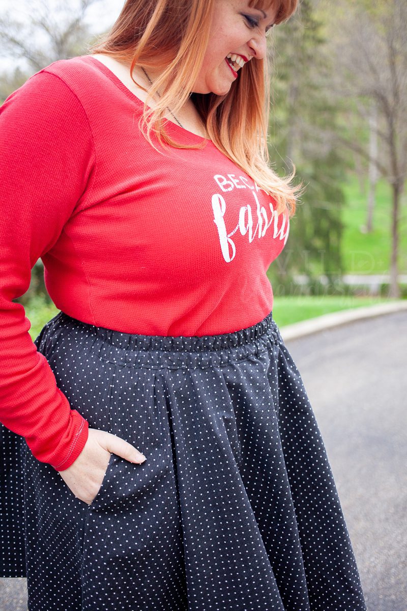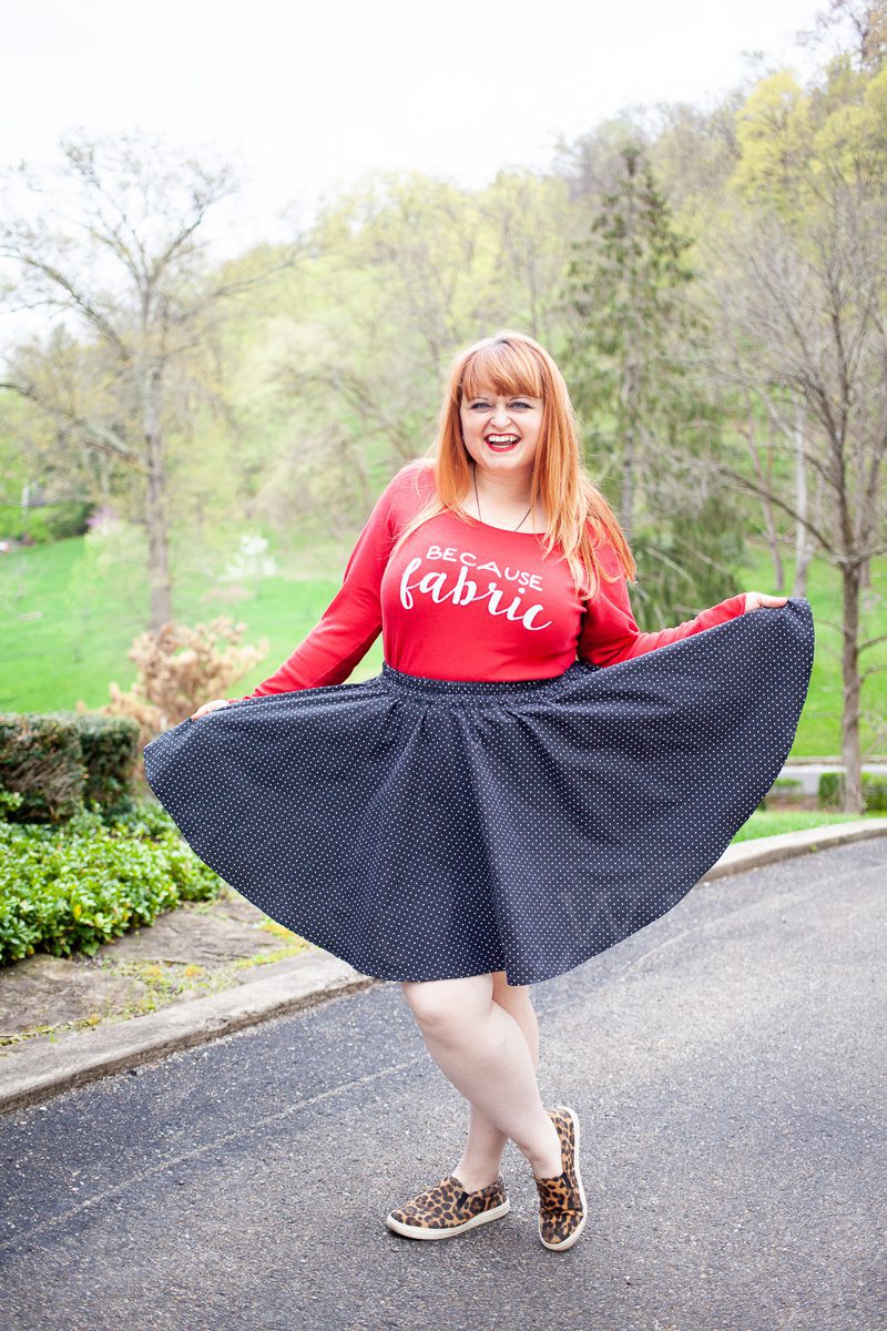 So I did a thing.  And that thing was do a bunch of math and take the guess work and math out of circle skirts for you — by releasing a FREE pattern: The Voyager Skirt!!