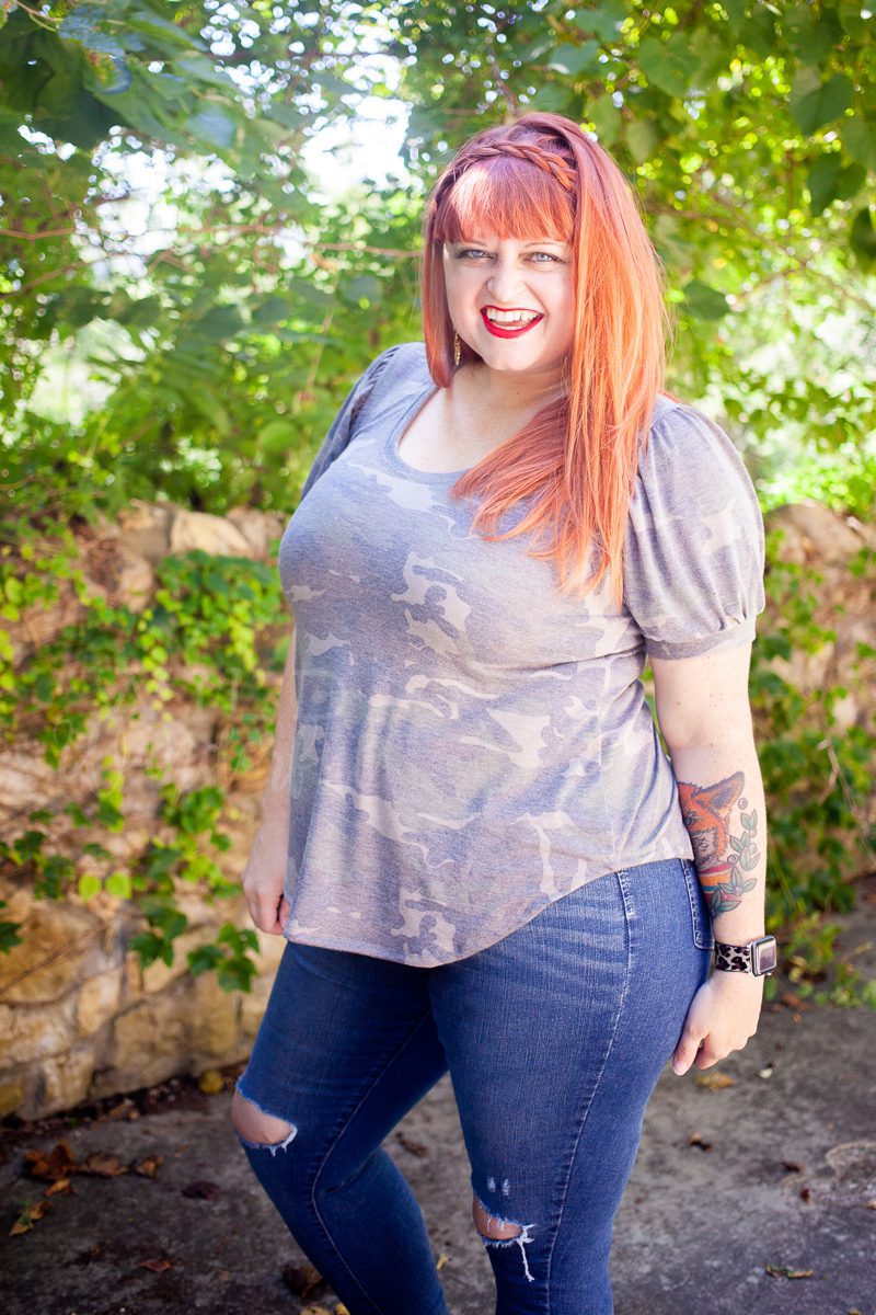 Judy and I have been excitedly waiting to be able to send out a camo print to everyone. Just like the leopard gorgeousness that went out in January, we know that these prints aren’t everyone’s cup of tea. But we also really love the prints ourselves….so we take the risk and send it anyway. So far, we’ve had nothing but love come back our way, and I’m hoping that people loved it like we do!