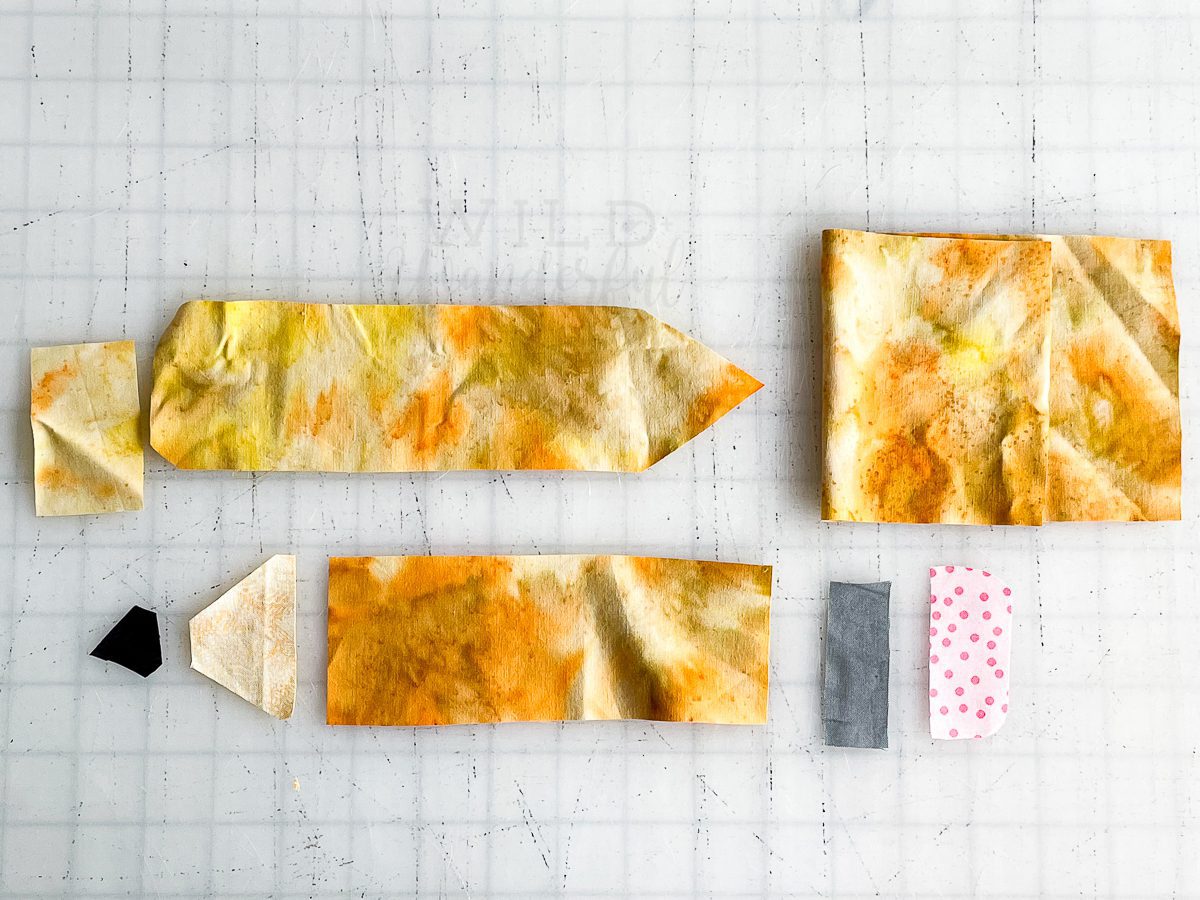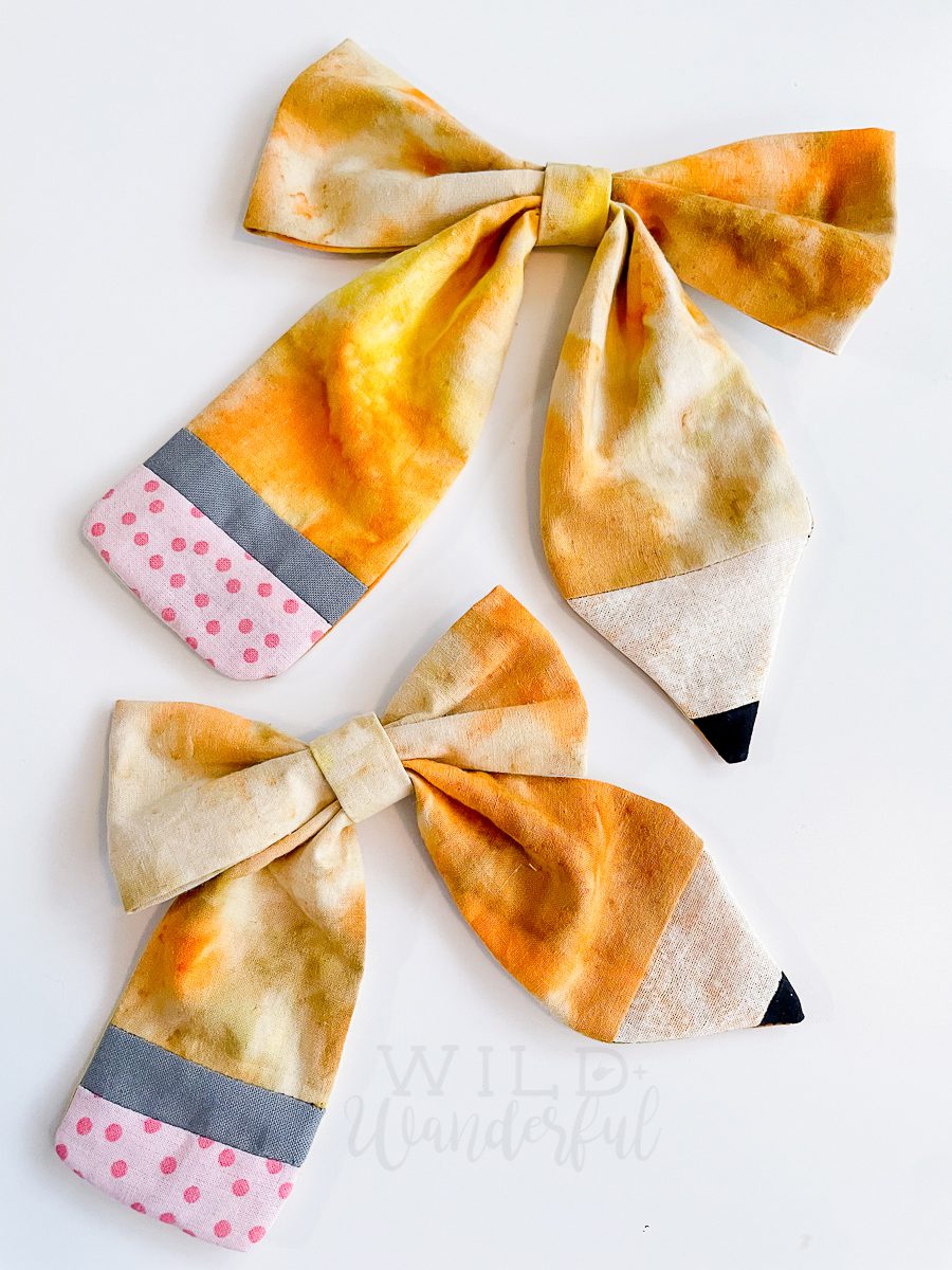 Step 1 – Cut out all of your pieces. You should have eight (8) in total. Your color scheme is up to you! I like to use patterned fabrics for mine, but plain would look cute! And so would mixing the colors up to give it more of a colored pencil vibe. These are your bows, make them how you’d like them!