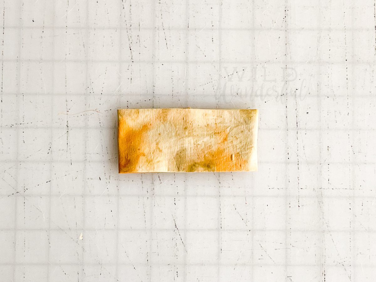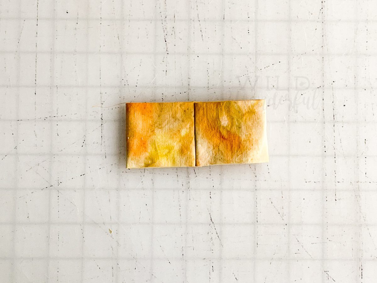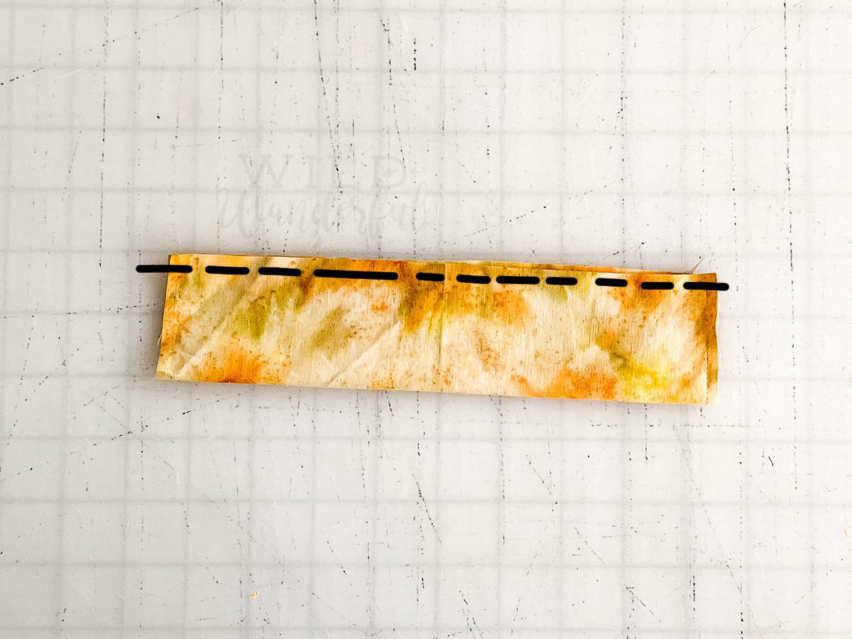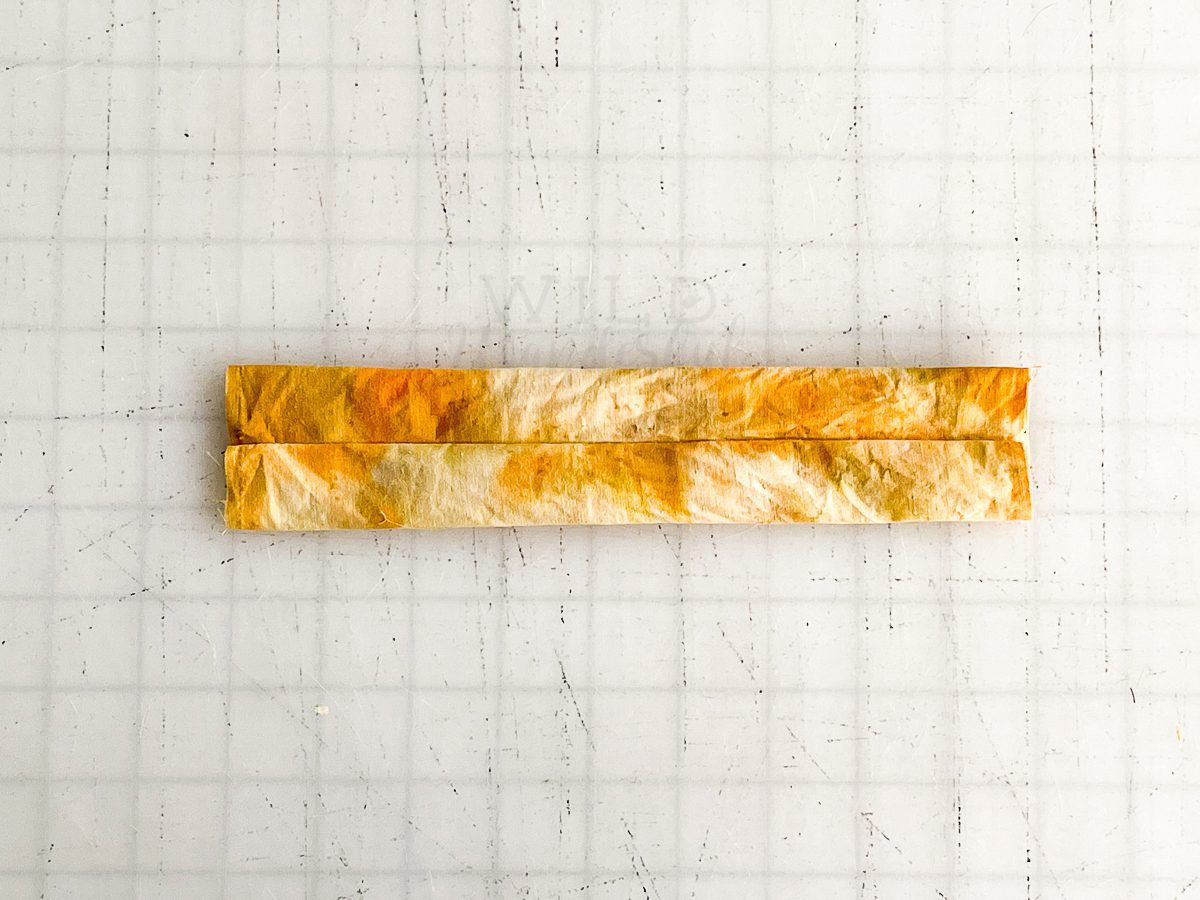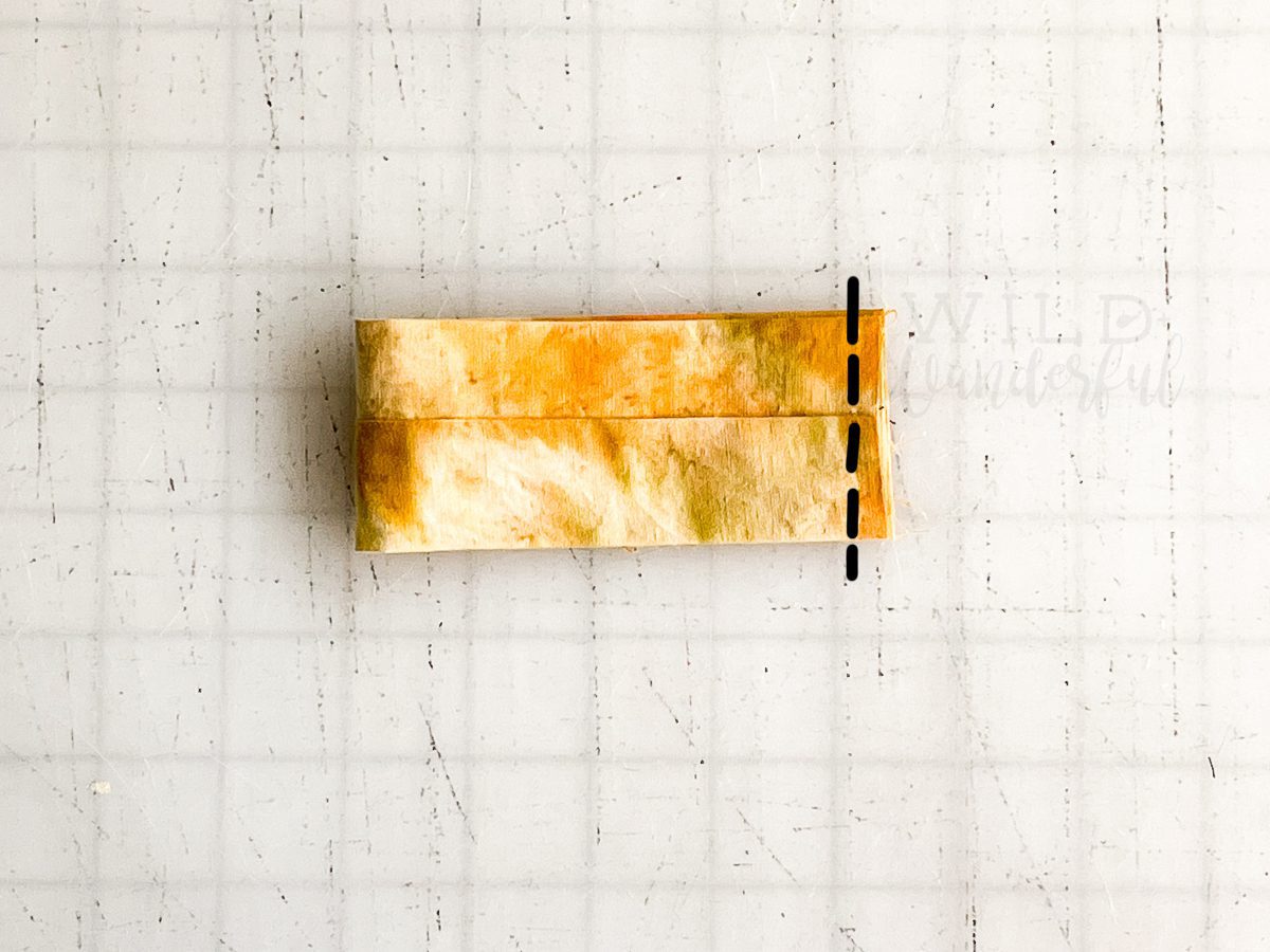 Step 12 – Place the main bow piece with right sides up. Fold in half, right sides together, meeting the short raw edges. Sew using 1/4″ seam allowance.