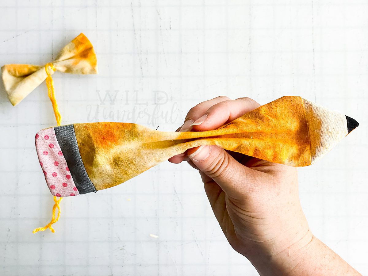 Step 8 – Turn tail piece right sides out, turning through the opening you left.