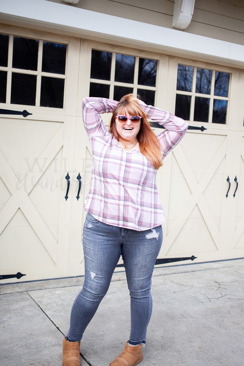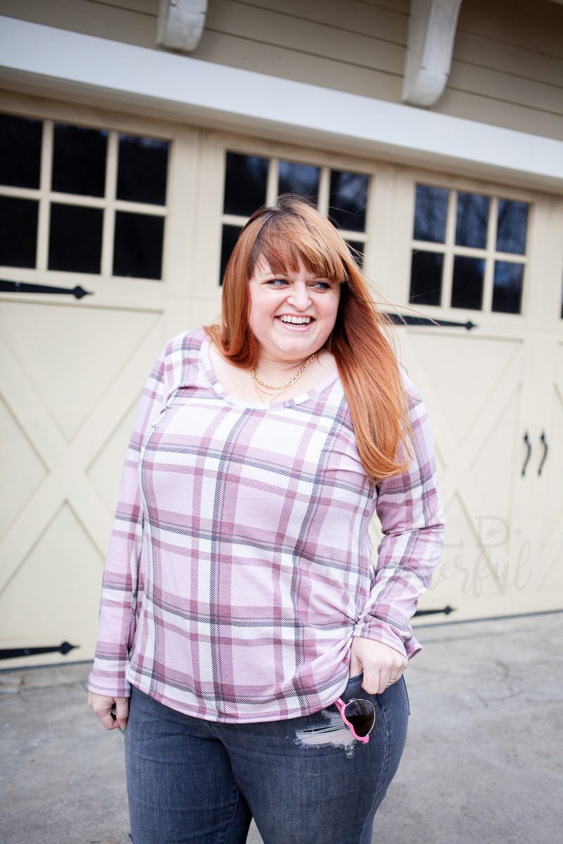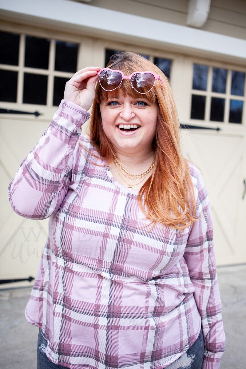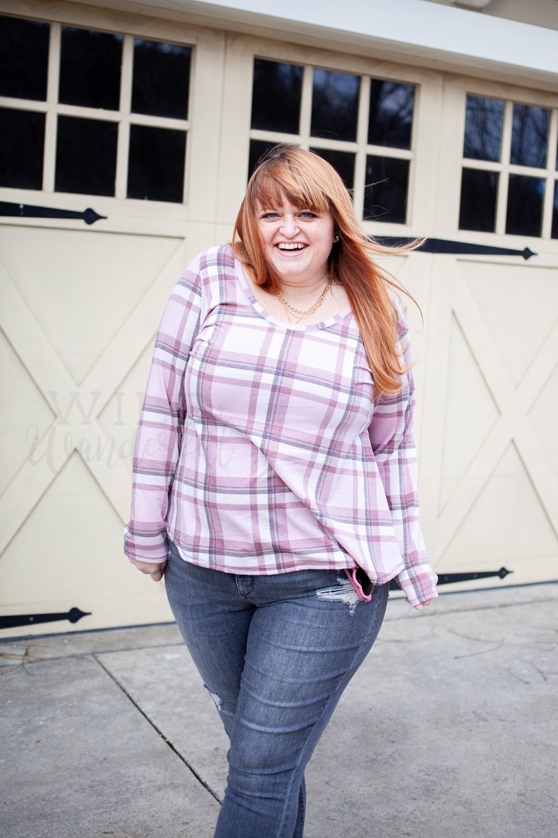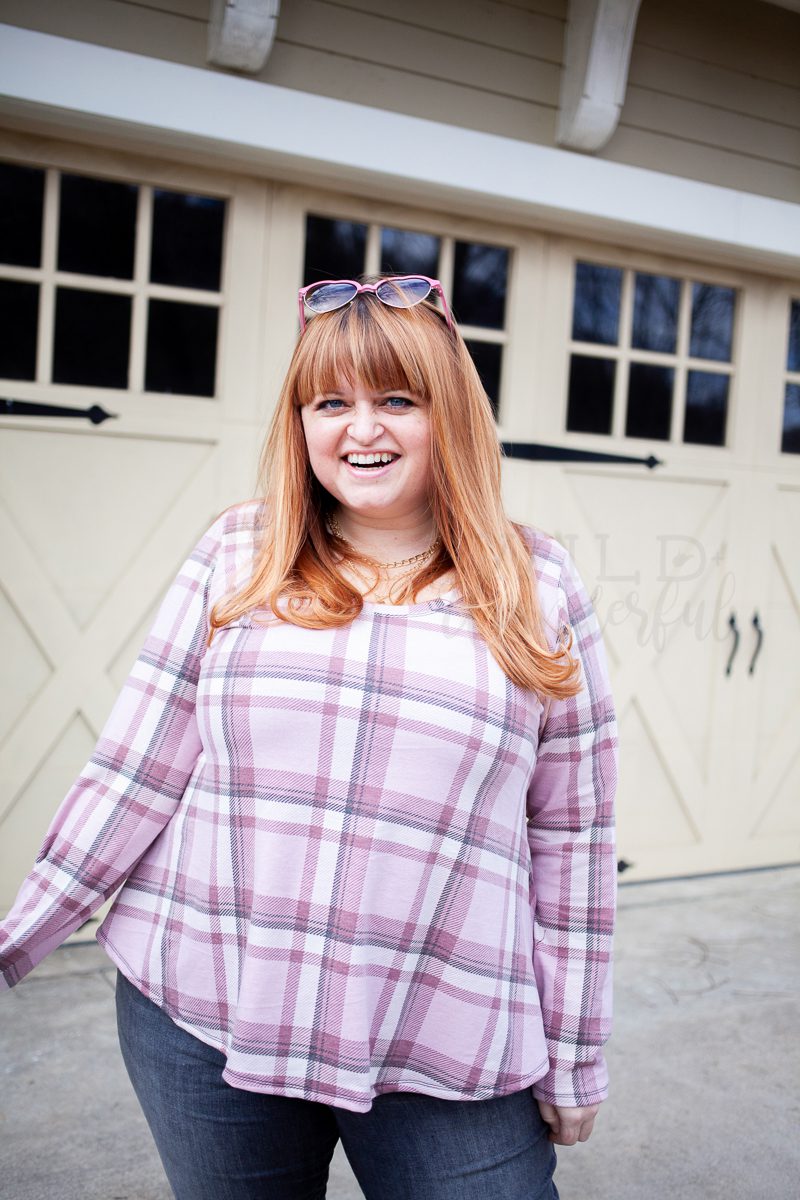 Which is why we picked this super adorable pink + mauve plaid, in a french terry base!