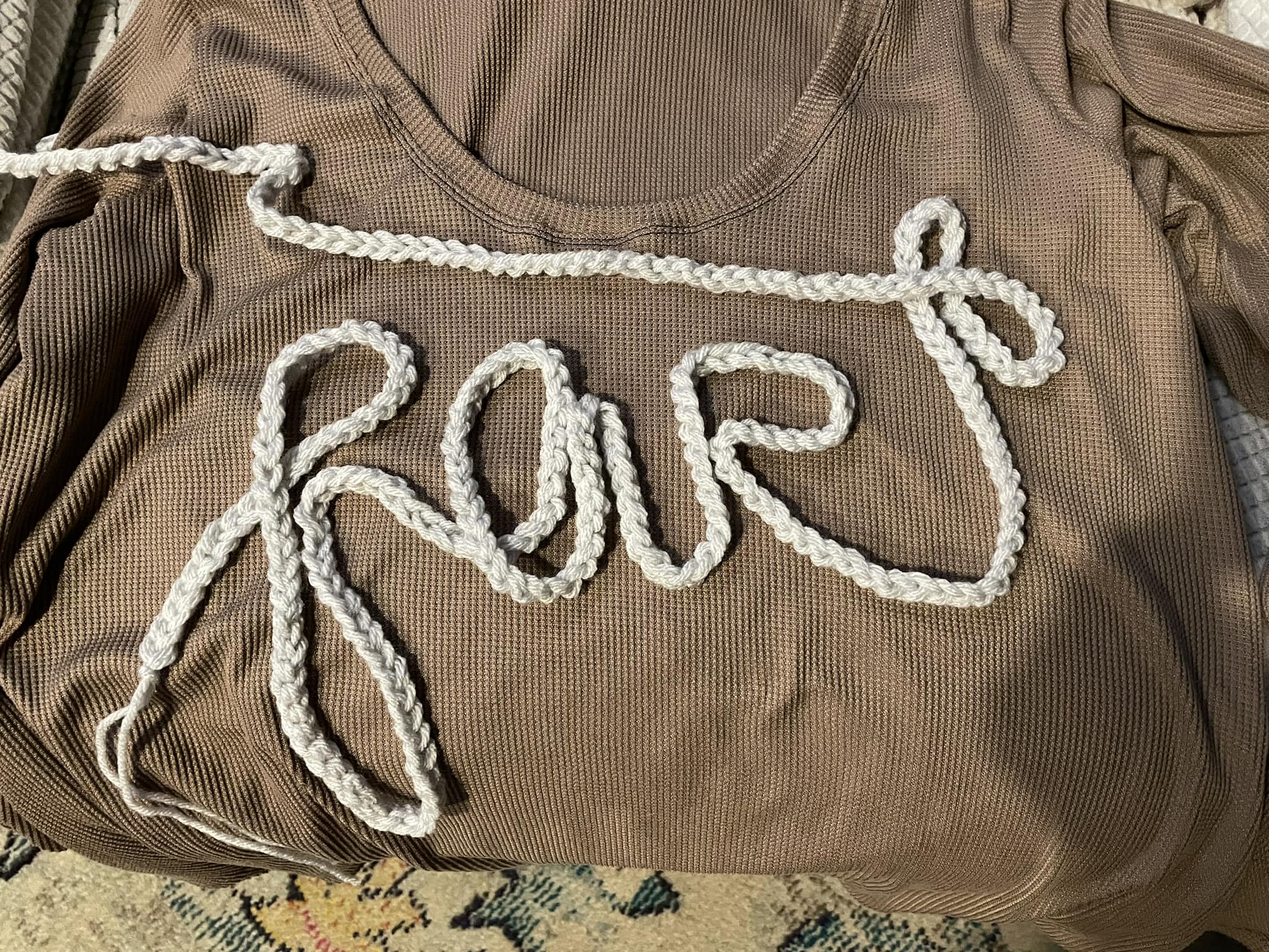 In case you can’t read my yarn script…it says: fart. My team suggested “fart” and then were disappointed that I went another direction.