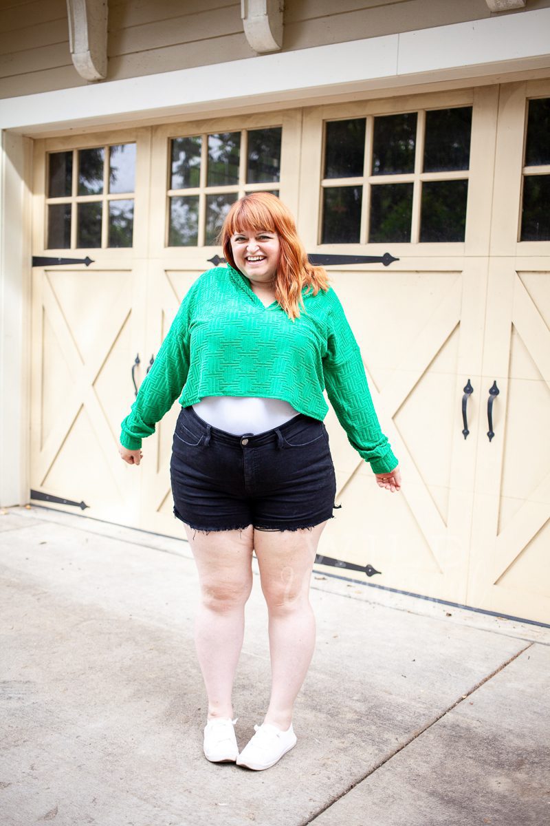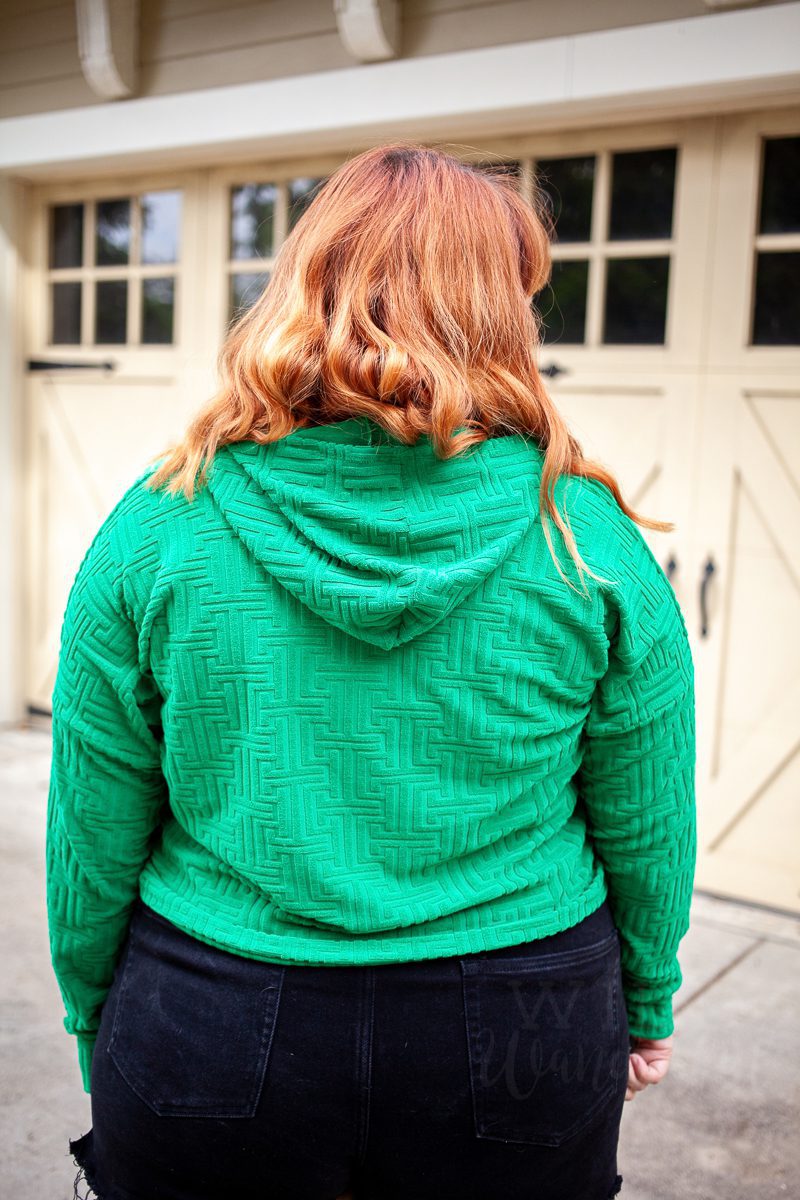 We were really interested in ordering the fabric for our subscribers but honestly were a little hesitant because we’d never seen anything like it before. But once a sample came in, we ordered almost instantly. It felt perfect for July…it reminded us of beach coverups and late night summertime hoodies. I think it’s just perfect.