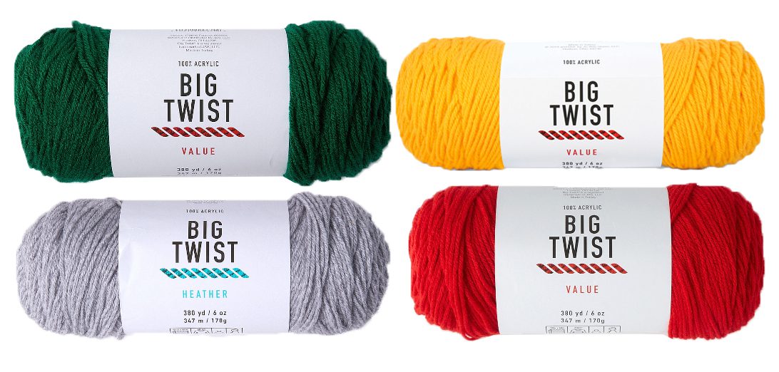 I used four yarn colors, all with the JoAnn Fabrics line of yarns called 'Big Twist Value'. It’s an acrylic yarn that is pretty soft and has a wide variety of colors. I’ve converted to this brand for most of my crochet projects because I have a JoAnn Fabrics local to me, and they always have these yarns in stock. Consistency is key, am I right?