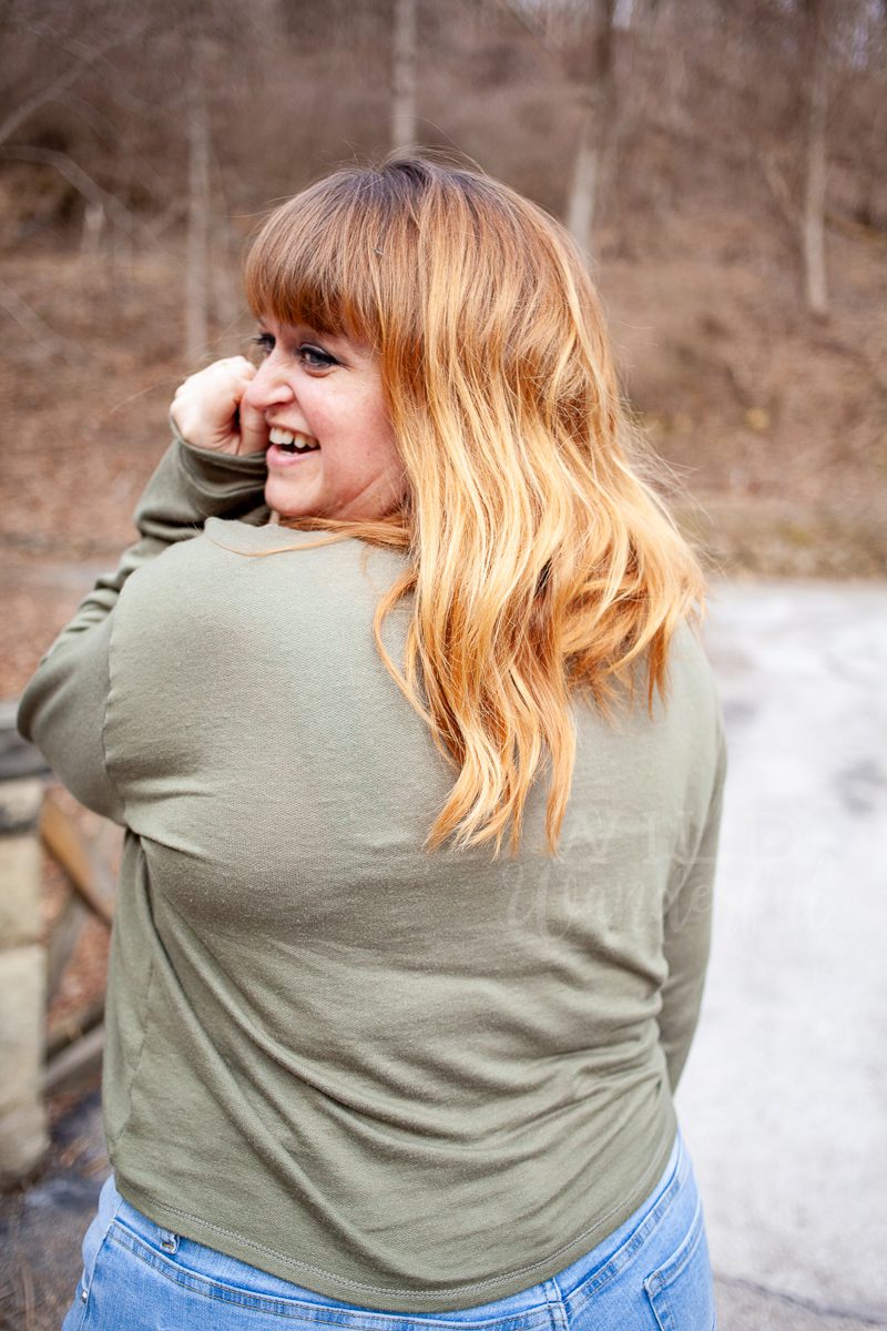 Baby French Terry has a very soft hand and the front is a solid while the backside has little loops…like what you would see with a more traditional French Terry. It’s very easy to sew with. And as you can see by my pairing with an oversized tee pattern, it really has a fantastic drape. If I were a longewear kinda gal, I’d be making these into some Cozy Pants in like ten seconds flat. But since I know myself and my wardrobe habits, making a top was a much safer bet for me.