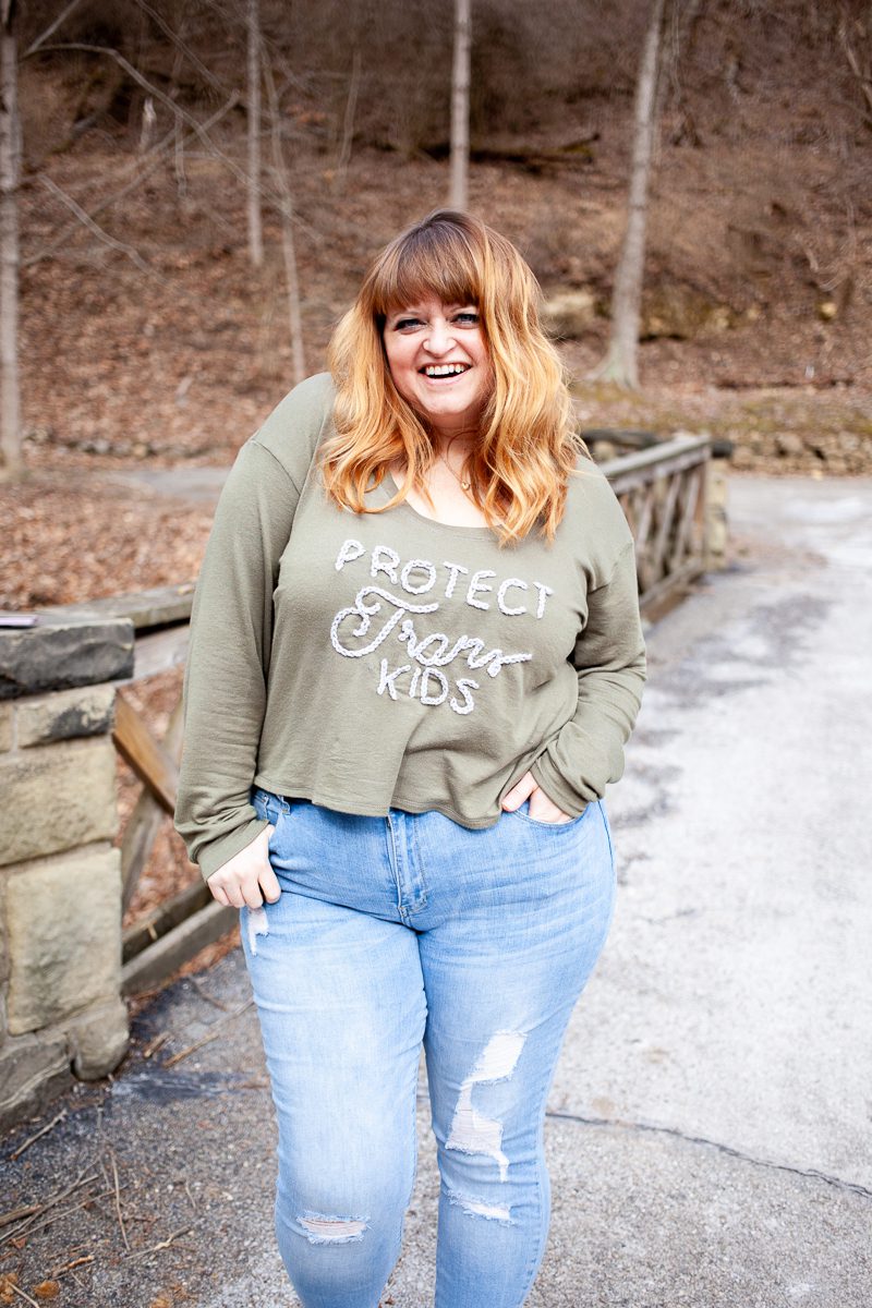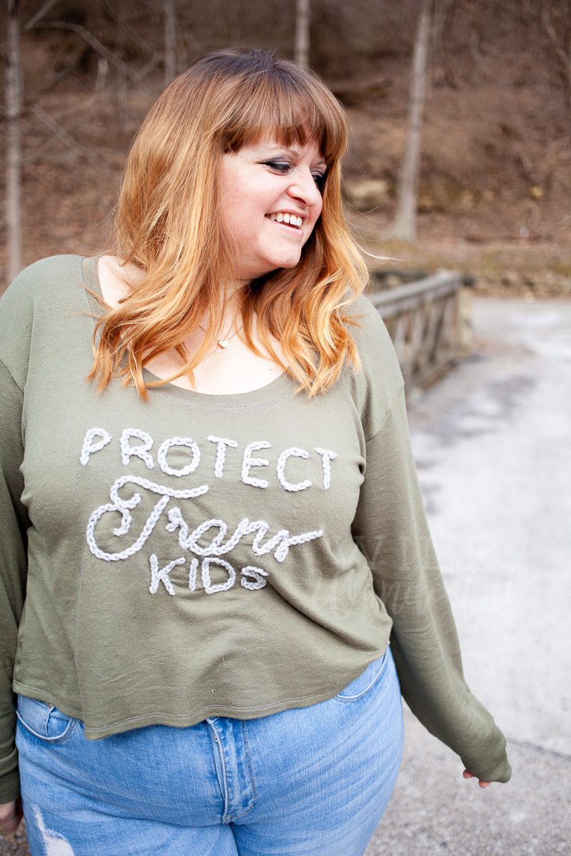 In addition to the excitement of a new, free sewing pattern, I’m dropping this “Protect Trans Kids” file, in case you want to use it to embroider your own top. I’ve recently discovered that I kinda/sorta know how to chain stitch embroider. And that it looks really cute with yarn…which I own tons of. So I took my absolute uncontrollable angst and anxiety about everything that’s going on in the world around us right now, and channeled some of it into my making.